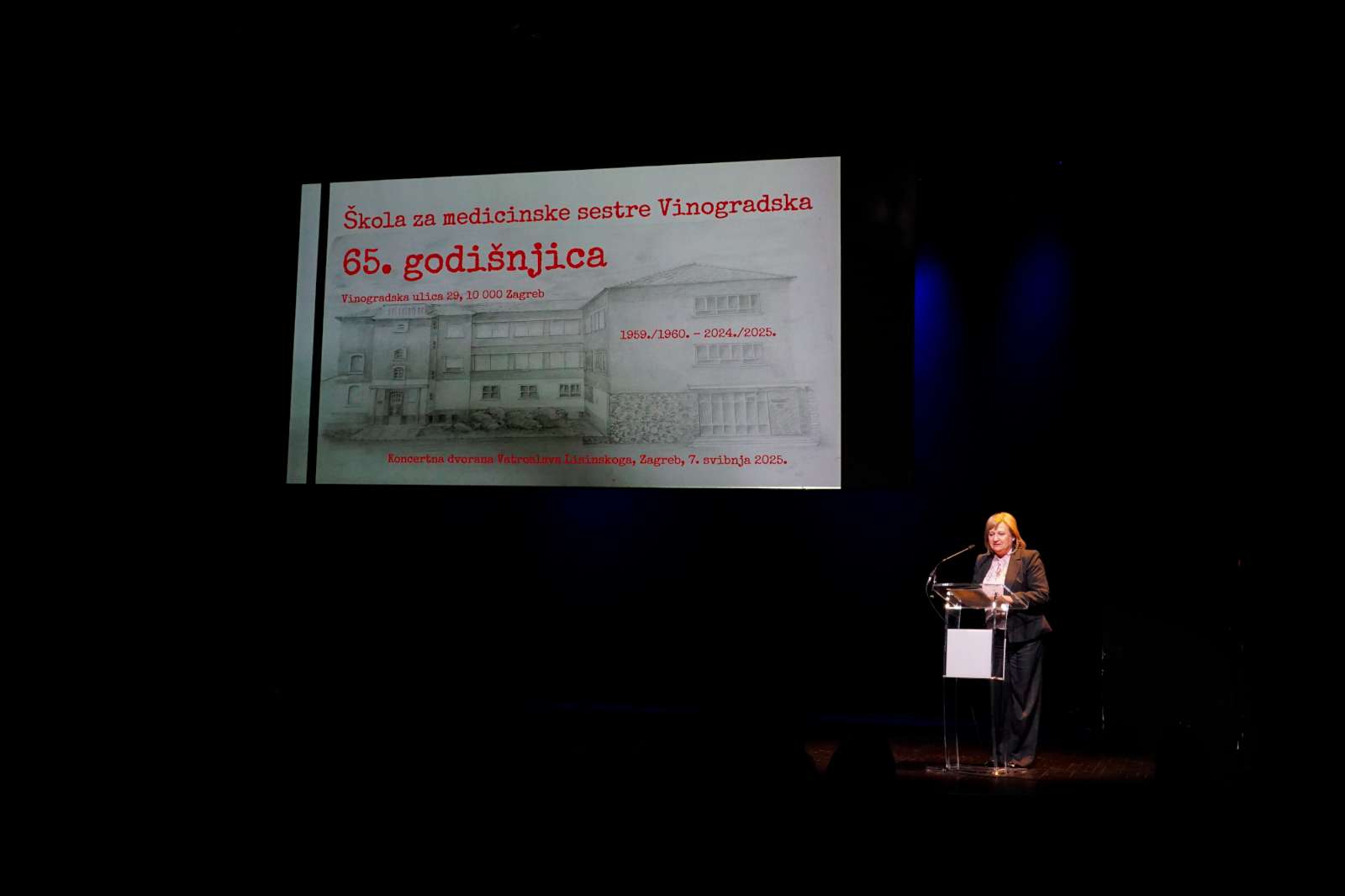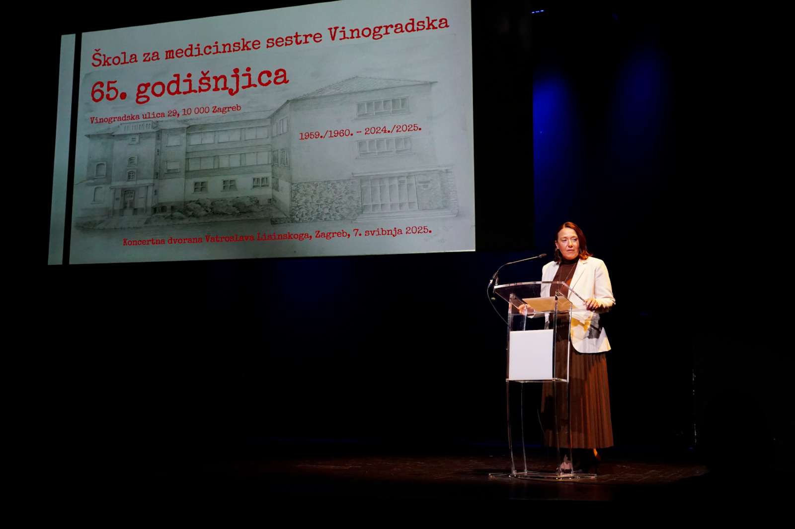 Uvodni govor na svečanoj proslavi 65. obljetnice Škole za medicinske sestre Vinogradska u Maloj dvorani Koncertne dvorane Vatroslava Lisinskog.